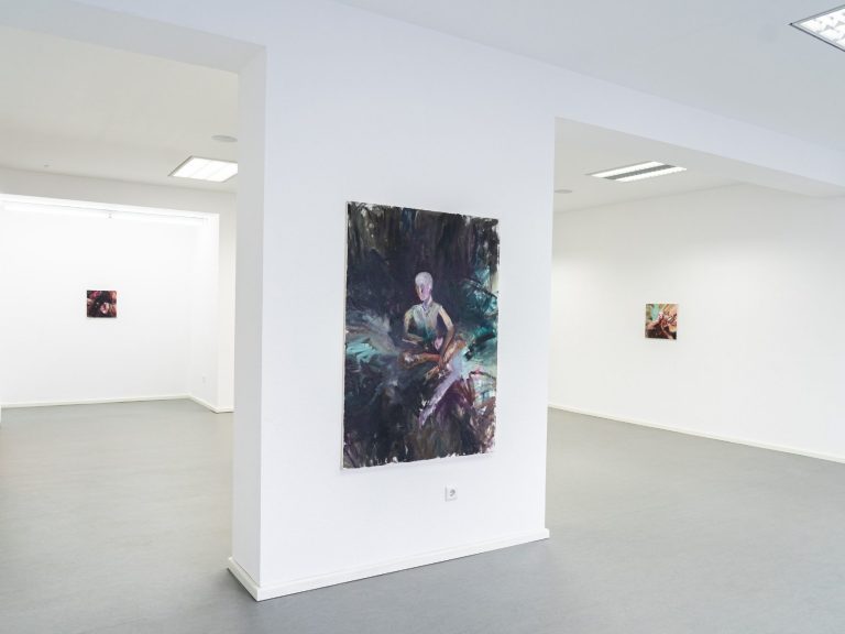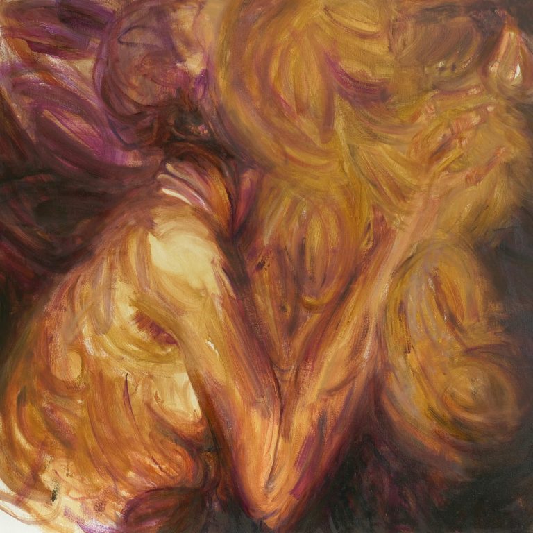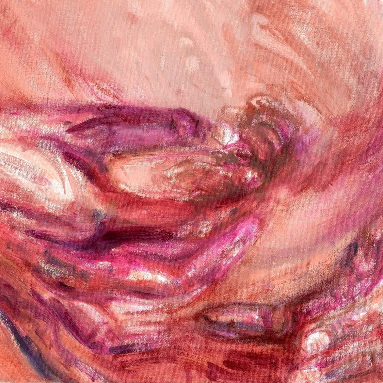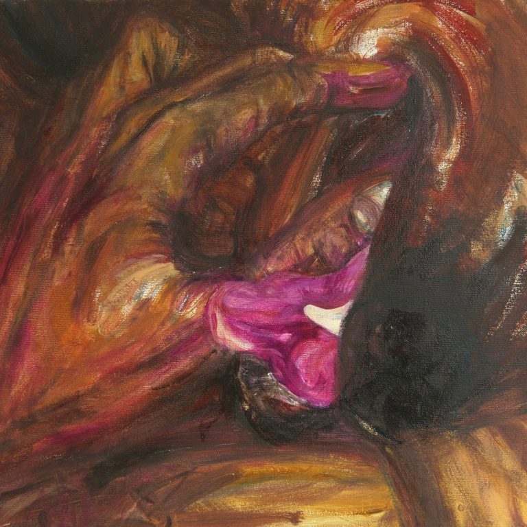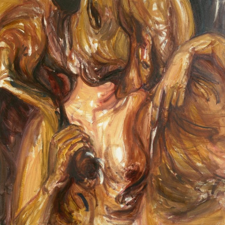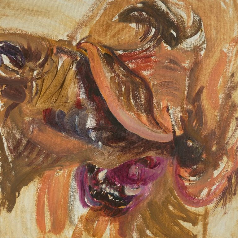 Ein solches Temperament des Farbauftrags gab es schon bei den Expressionisten und auch später bei Willem de Kooning oder Arnulf Rainer. Es war der Tanz auf der Bildfläche, die Aktionen auf der Leinwand oder gegen sie – aber innerhalb des Vierecks. Hier, bei den Malereien von Lioba Schmidt, nehme ich die Bildfläche kaum wahr. Was ich sehe, sind Aktionen auf und im Bereich des menschlichen Körpers – oder gegen ihn. Es sind keine Kompositionen in der Fläche, sondern es sind Aktionen zum menschlichen Körper und von ihm weg – und Aktionen in seinem Umfeld, im angrenzenden Außenbereich, im Schatten und in der Leere.